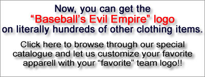 Baseballs Evil Empire takes pride in our merchandise and our great task of alerting all baseball fans and the like to send the message out loud that The NY Yankees are Baseballs Evil Empire, and can only be categorized as “the best team money can buy”